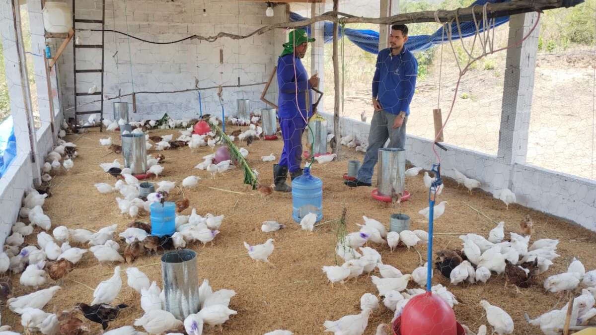 Em outubro de 2025, os técnicos da Empresa de Assistência Técnica e Extensão Rural do Ceará – Ematerce, escritório de Mucambo – CE, Ivo Azevedo Parente e Elias Batista dos Santos, visitaram a propriedade dos agropecuaristas Iranir Nascimento de Lima e Maria Betânia da Conceição, na comunidade Santa Clara, a 18 quilômetros da sede do município de Graça – CE, para orientar sobre as técnicas e cuidados na criação de galinhas caipiras de postura, afetadas por problemas de canibalismo entre as aves.